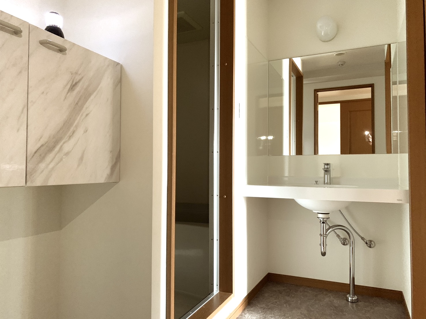 メイブラッサムの洗面台が一部リニューアルされました。 シンク一体型の洗面ボウルで、お手入れも楽々です。 サイドの壁面はマグネットパネルになっていて、お好みの位置でタオルバーや収納をつけることが可能です。 今後も、皆様に快適にお過ごし頂けるよう、現代的なバージョンアップを図ってまいります。